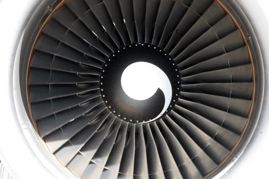 A turbine of a jet plane sitting on the runway of an airport in Madrid, February 2007. The OSCE Forum for Security Co-operation is addressing the issue of combating the illicit trafficking of small arms and light weapons by air.