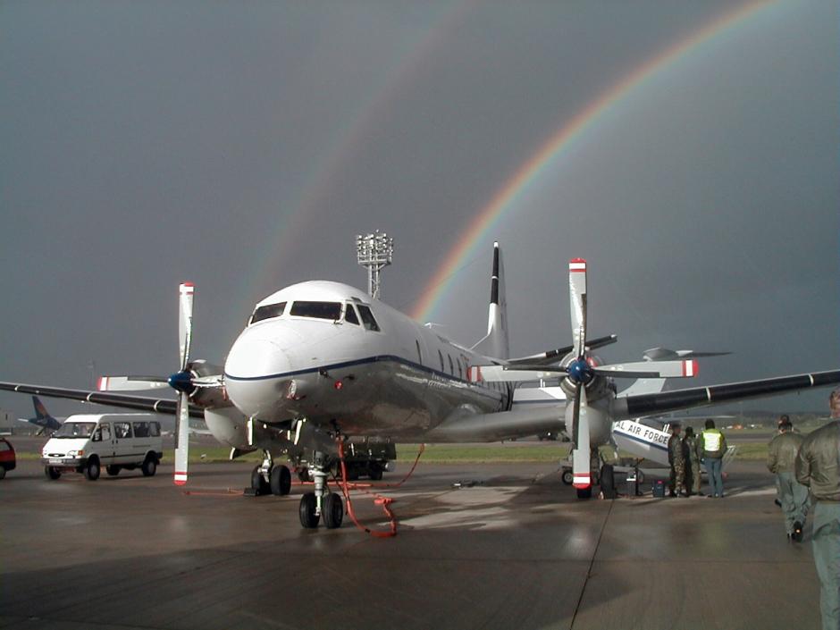 A rainbow in the sky over an Andover C Mk1 aircraft, 23 October 2000, used by the UK and Croatia for a flight over Hungary under the Open Skies Treaty.