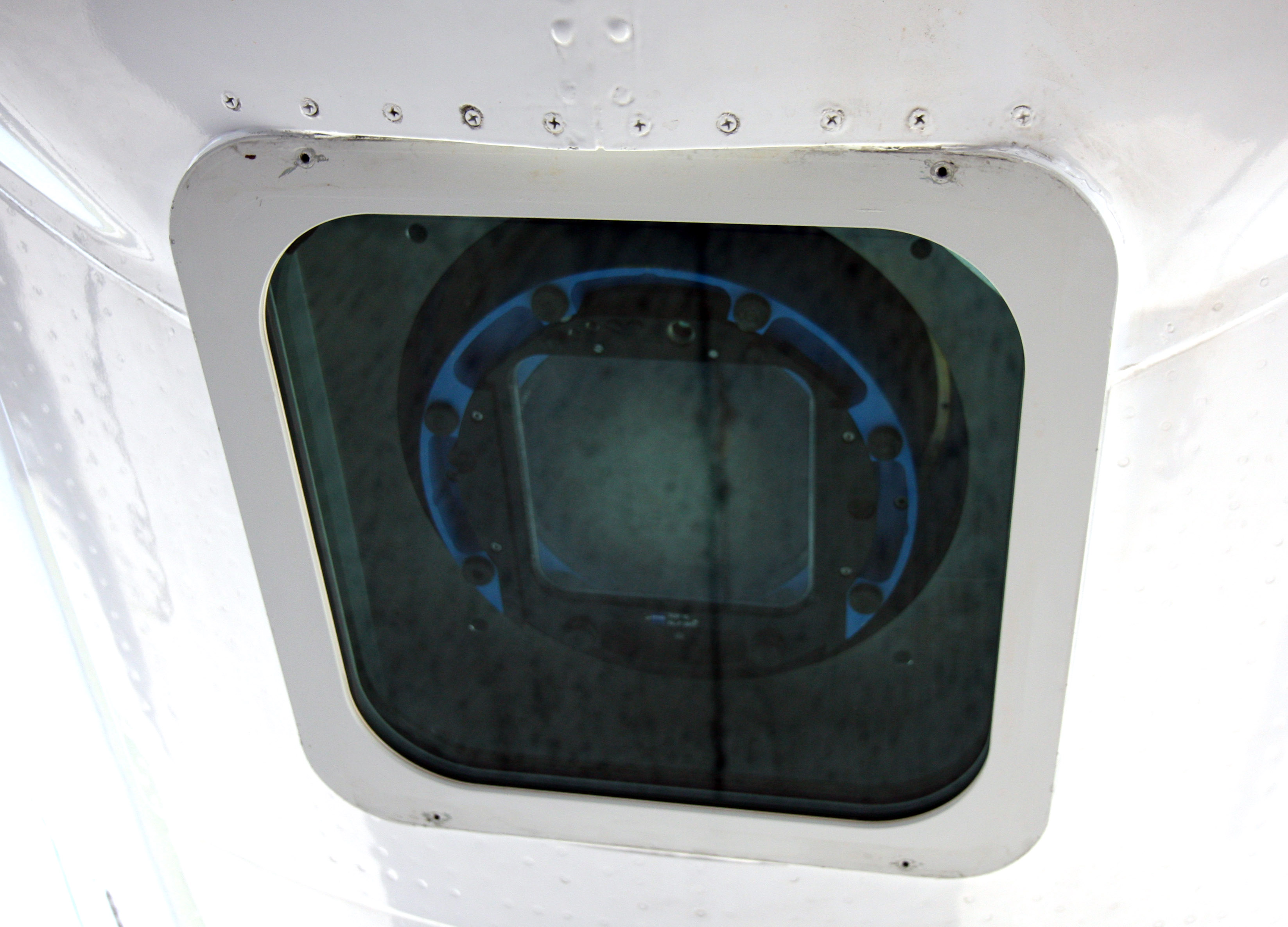 A camera used on a Saab-340B aircraft over Slovakia during a joint US-Swedish training flight, 28 May 2008, under the Open Skies Treaty.
