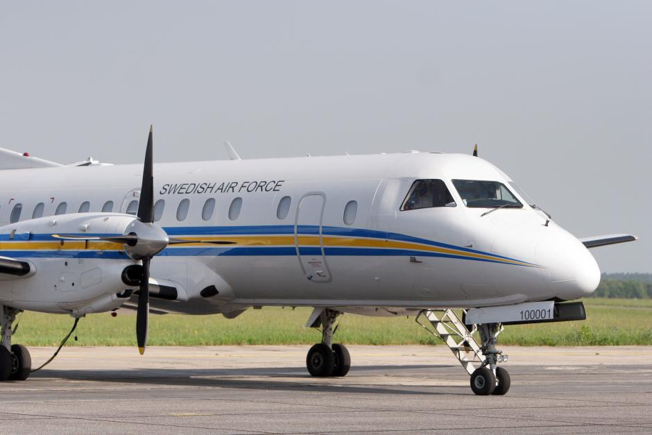 A Saab-340B aircraft on the tarmac during a joint US-Swedish training flight over Slovakia, 28 May 2008, under the Open Skies Treaty.