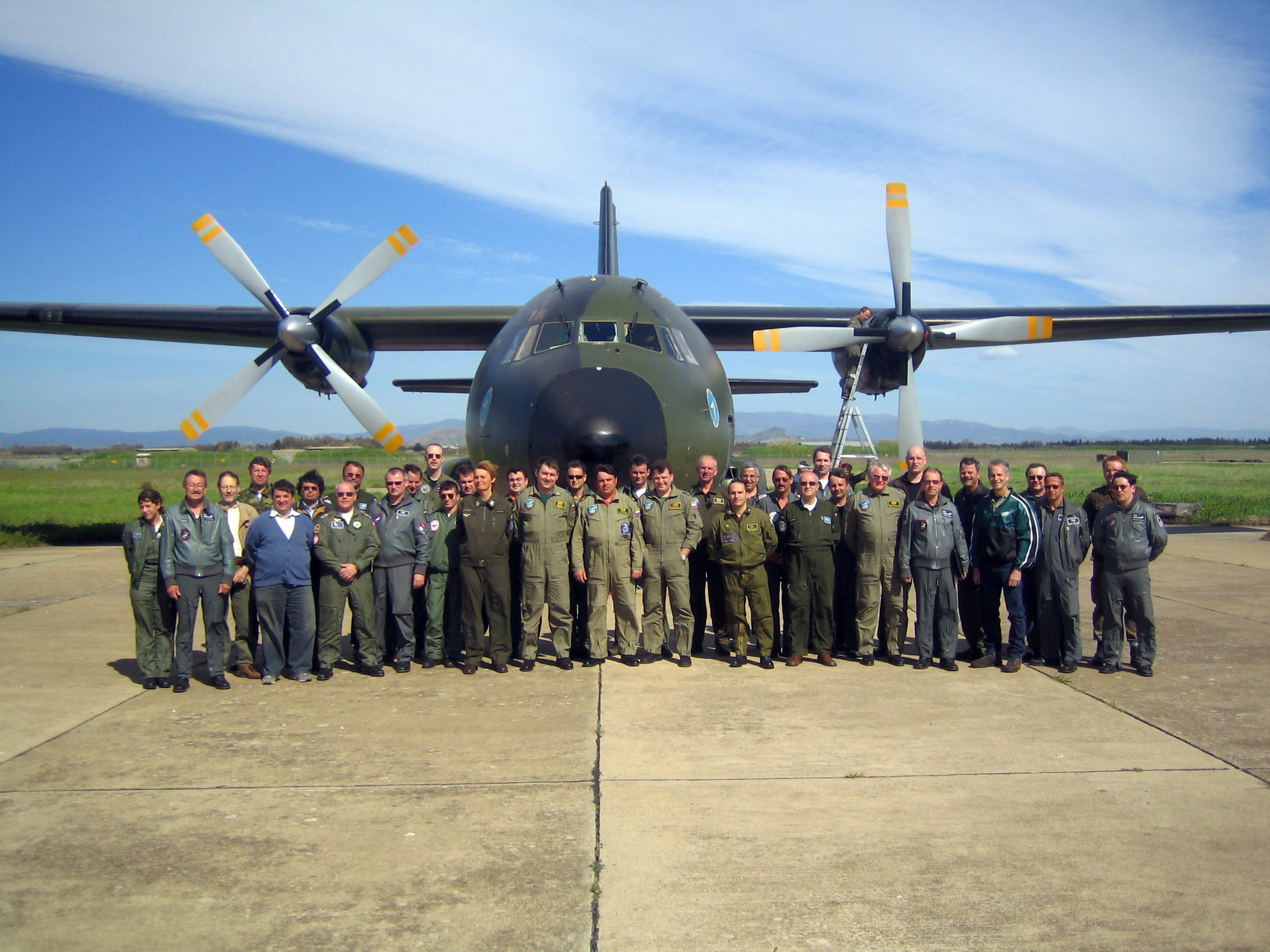 A group photo of Russian and Italian crews after test flights under the Open Skies Treaty over Italy, April 2006.