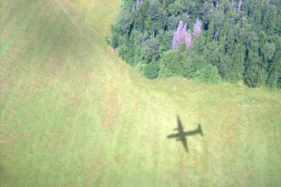 A shadow of a Hungarian Air Force AN-26 aircraft flying under the Open Skies Treaty over the territory of Russia, 15 July 2005.