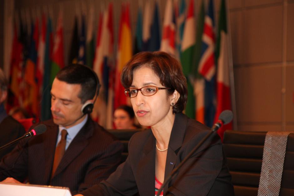 The OSCE Senior Adviser on Gender Issues, Jamila Seftaoui, delivers a speech to the OSCE Forum for Security Co-operation. 1 April 2009, Vienna.