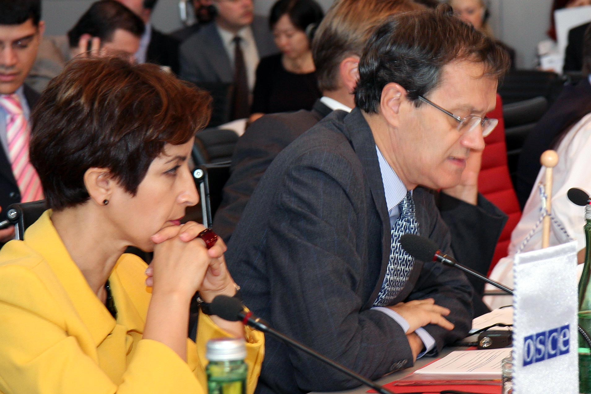 OSCE Secretary General Marc Perrin de Brichambaut (r) reports to the Permanent Council on the implementation of the OSCE Gender Action Plan, Vienna, 24 September 2009.