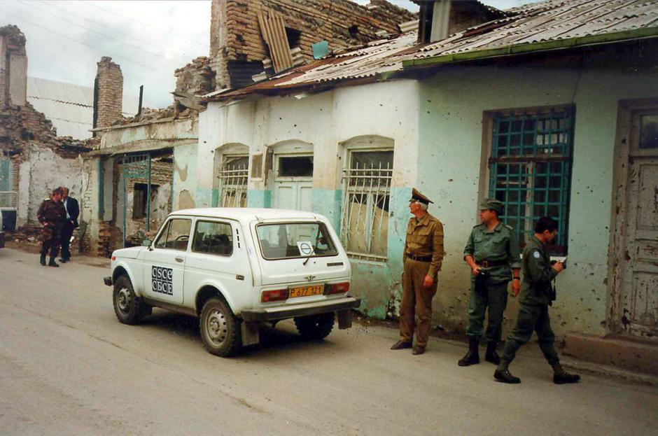 Mission members of the CSCE Mission to Georgia inspect areas of
