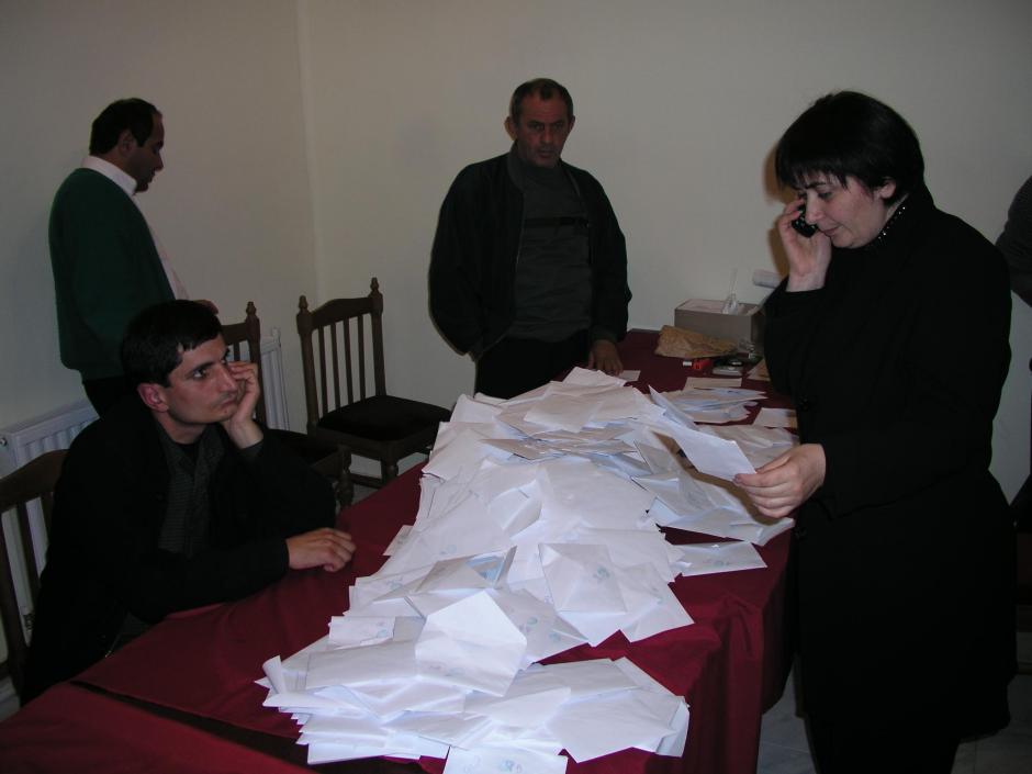 Election station officials prepare to count ballots at the polling station, Bolnisi, Georgia, 2 November 2003.
