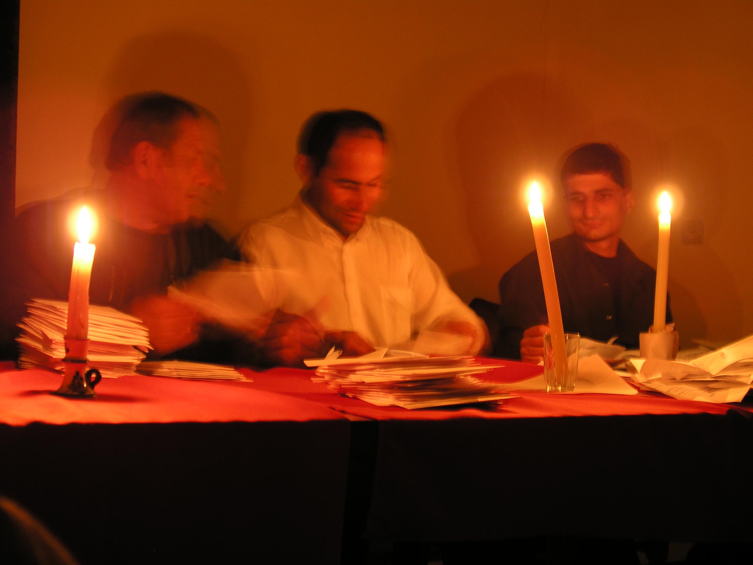 At 3:51 AM, election station officials count ballots by candlelight after the electricity failed, Bolnisi, Georgia, 3 November 2003.