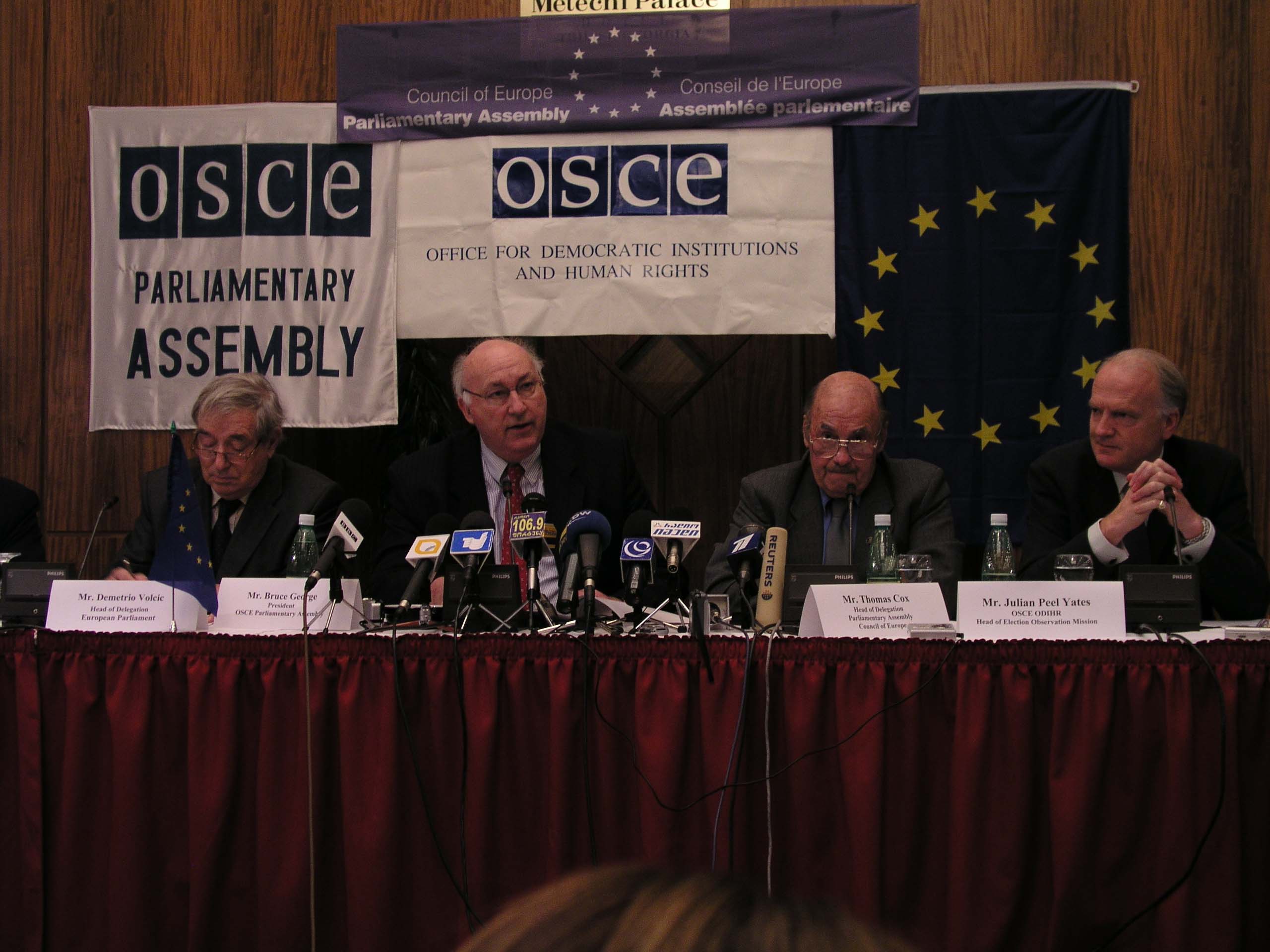 Following the parliamentary briefings, ODIHR/OSCE and PACE Officials give a press conference at the Sheraton Hotel, Tbilisi, Georgia, 3 November 2003.