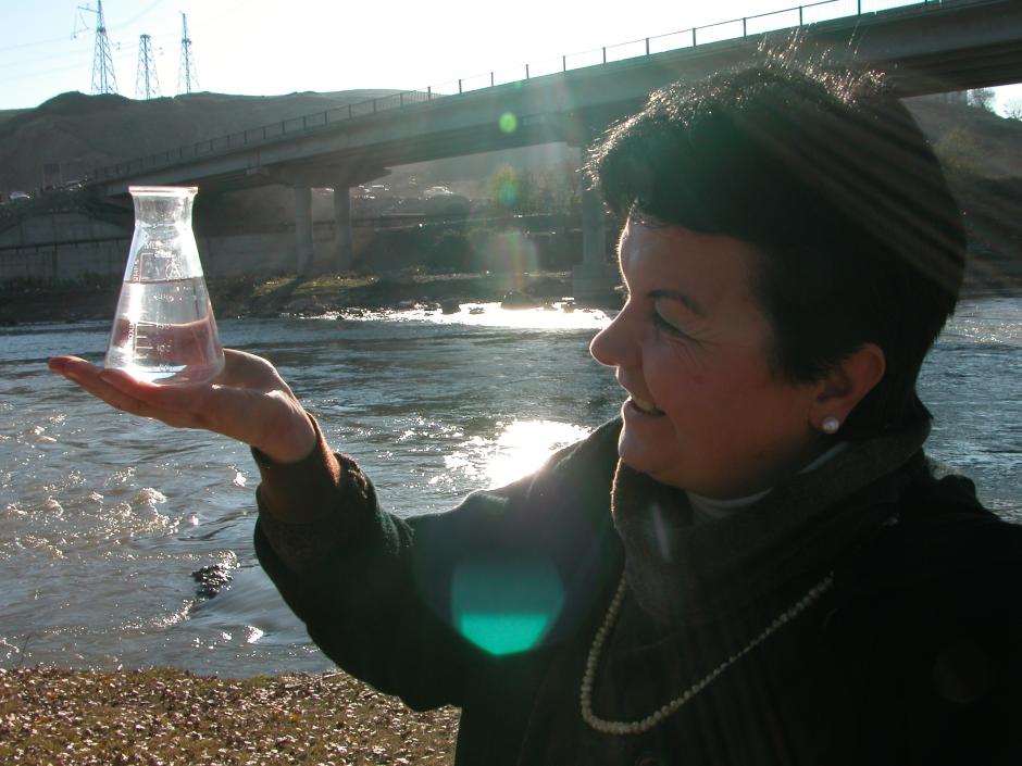 Scientists from Tbilisi State University take river samples for the Caucasus Regional Water Surface Monitoring Project, part of the OSCE/NATO Science for Peace Programme, November 2004.
