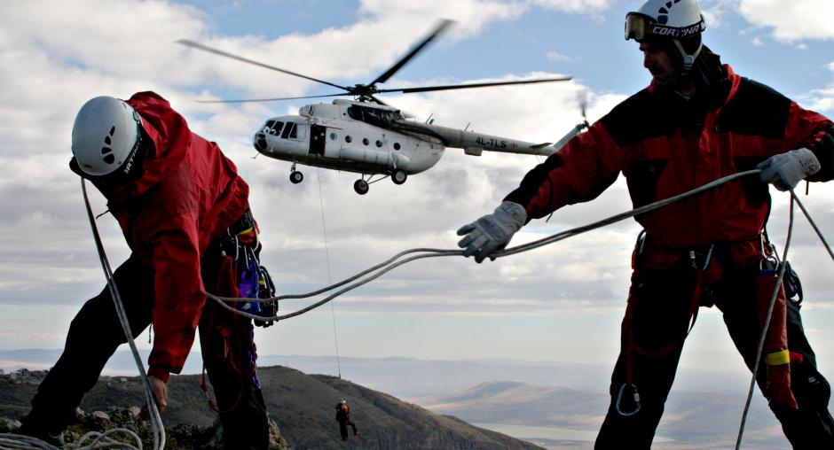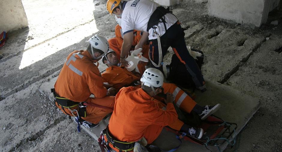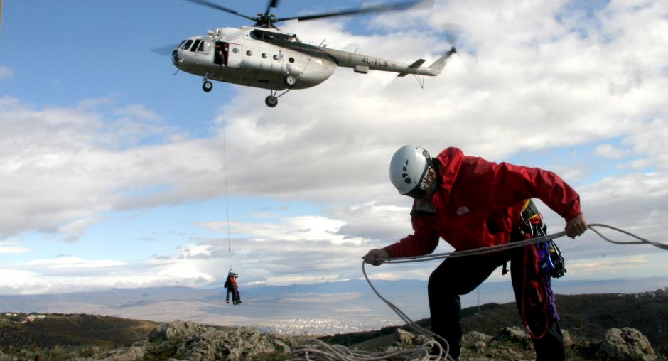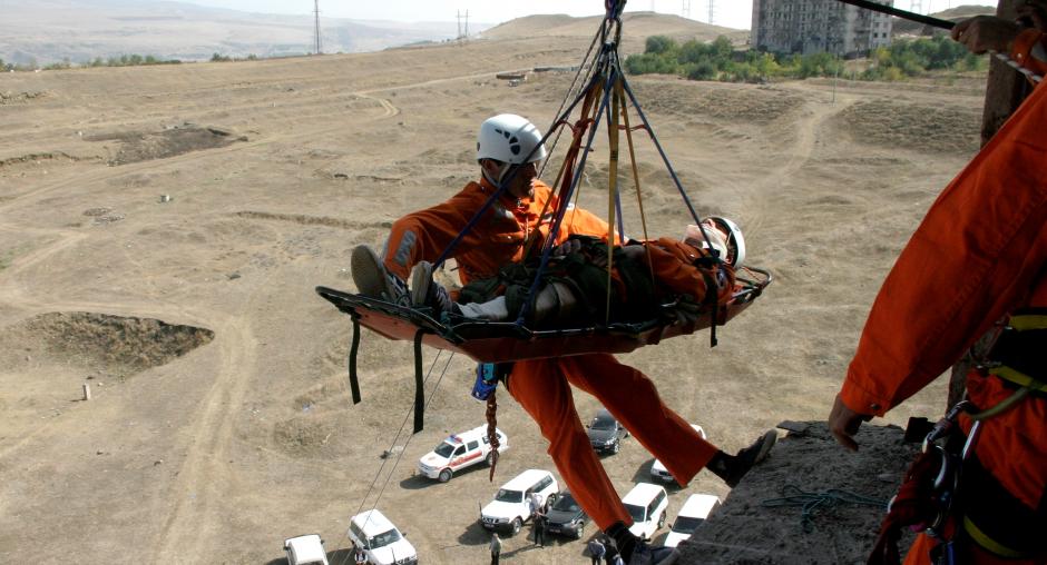 As part of an OSCE search and rescue training programme, rescue workers in Georgia demonstrate their skills in complex scenarios, both with and without helicopter assistance, Tbilisi, 3 November 2007. (OSCE/David Khizanishvili)