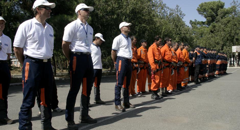 Members of the emergency department of the Georgian Interior Ministry attend a graduation ceremony for a search and rescue training course they completed, organized by the OSCE Mission to Georgia, Tbilisi, 28 September 2007. (OSCE/David Khizanishvili)
