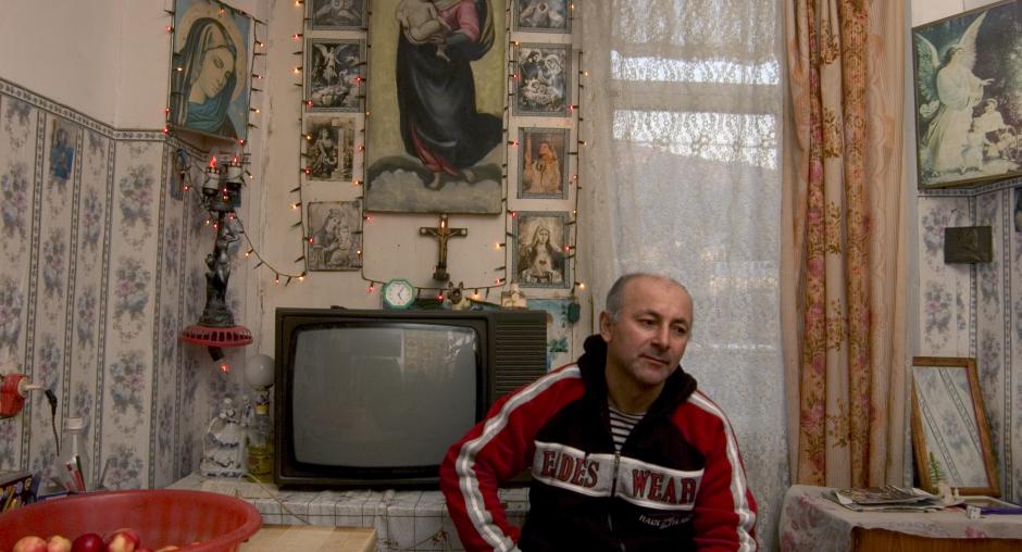 A tram driver for 23 years, Gocha Megrelashvili in his apartment in Tbilisi, 8 December 2006. The father of two children lost his job after local authorities decided that trams in the Georgian capital were unprofitable. (OSCE/German Avagyan)