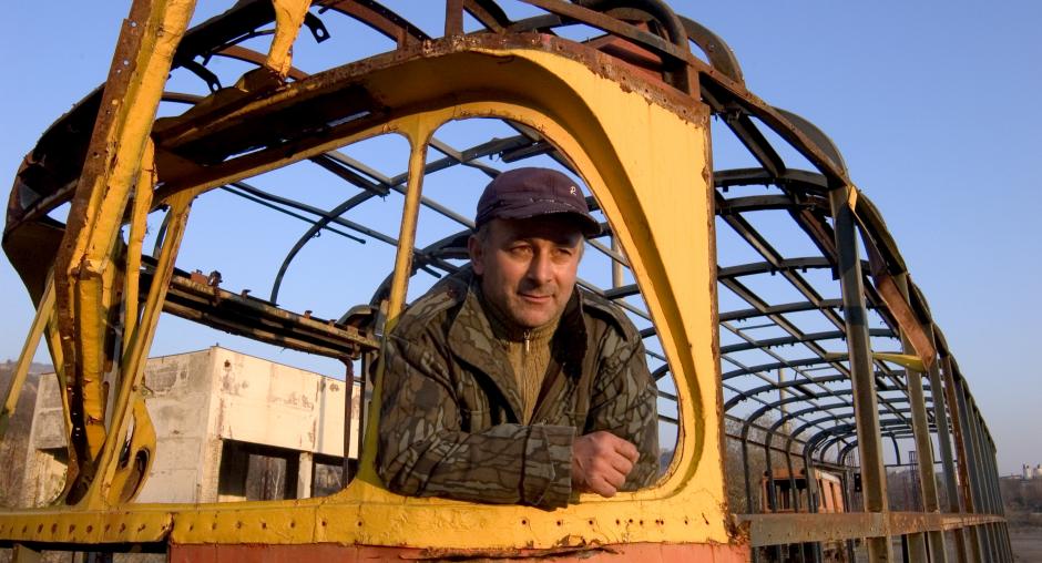 A tram driver for 23 years, Gocha Megrelashvili stands at a "tramway cemetery" in Tbilisi, 8 December 2006. The father of two children lost his job after local authorities decided that trams in the Georgian capital were unprofitable. (OSCE/German Avagyan)