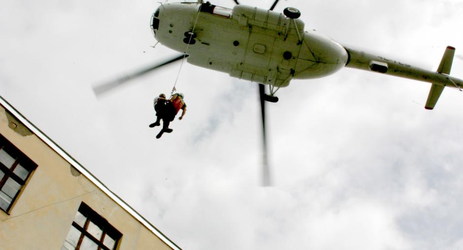 The OSCE's Training Assistance Programme for Georgian border guards includes instruction on helicopter operations, April 2006. (OSCE/David Khizanishvili)