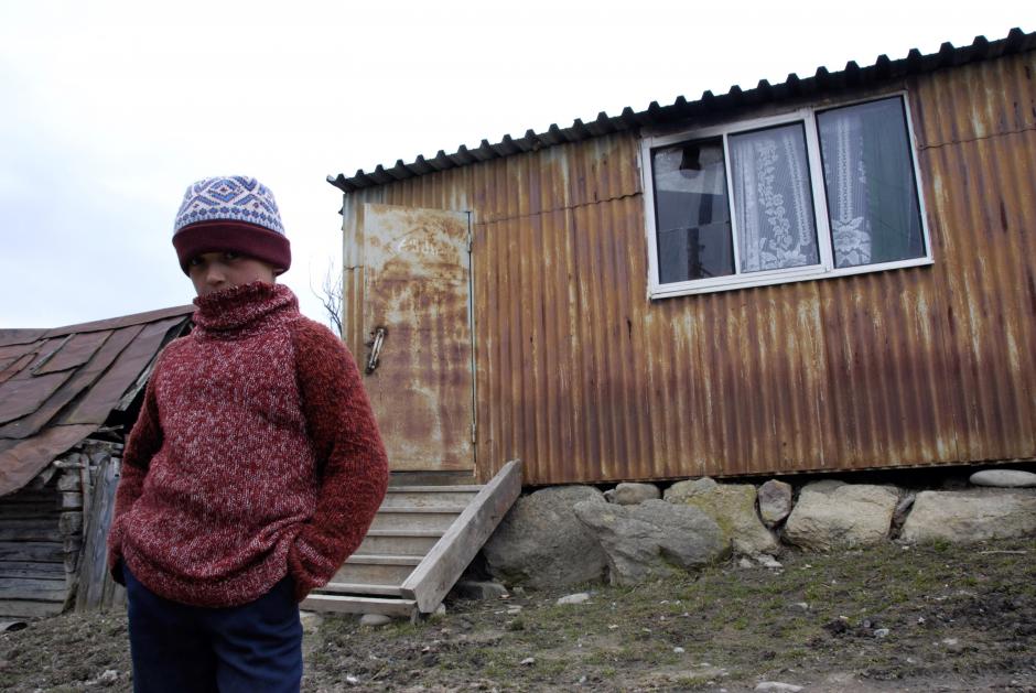 A boy stands next to a house in South Ossetia, 18 March 2007. A number of schools and hospitals will be reconstructed under an international programme for the economic rehabilitation of the Georgian-Ossetian conflict zone.