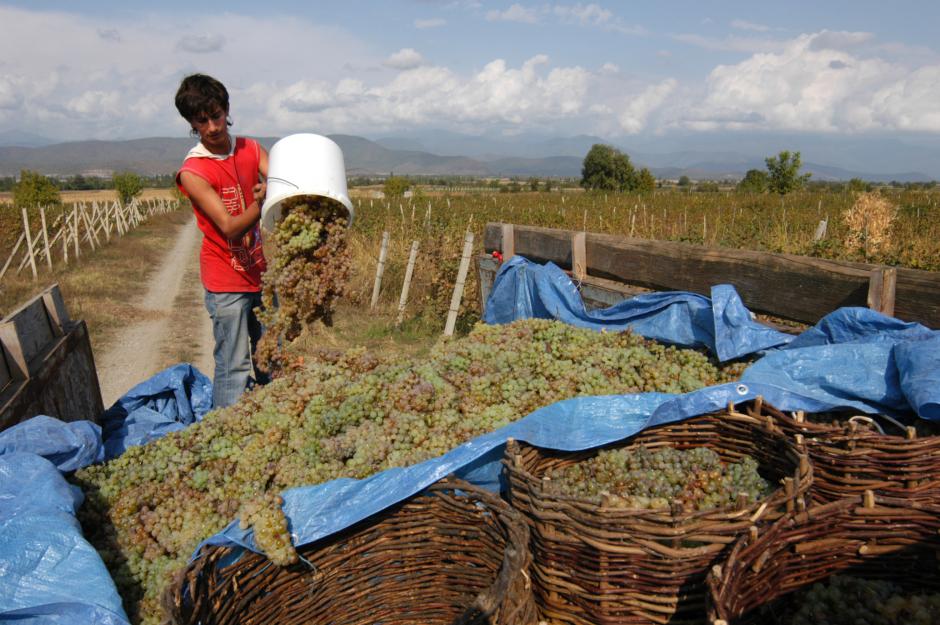 Collecting grapes in Georgia's Kakheti region, October 2007.