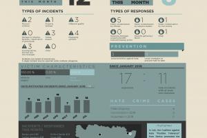These statistics include victim characteristics, the type of incident and the corresponding community response as well as data on ongoing and completed hate crimes cases. The monthly overview features information on actions taken by ‘local coalitions against hate’ and prevention strategies developed by local authorities.