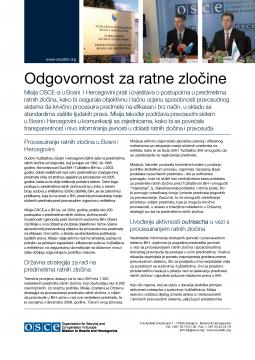 Sudovi i tužilaštva u Bosni i Hercegovini (BiH) rade na predmetima ratnih zločina od kraja rata, koji je trajao od 1992. do 1995. godine. Novoosnovani Sud BiH i Tužilaštvo BiH su, u 2003. godini, dobili nadležnost nad ovim predmetima i značajan broj predmeta (više od stotinu) uspješno je procesuiran od 2005. godine, kada su te dvije institucije počele s radom.