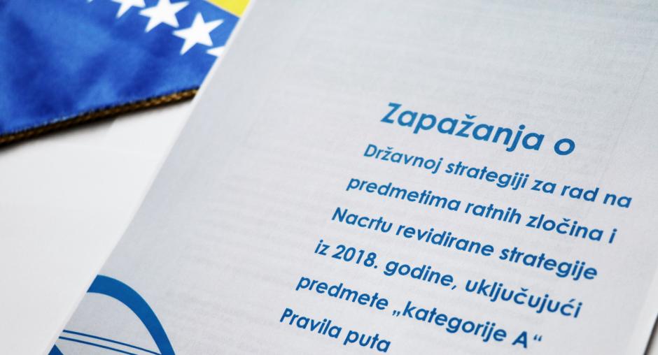 Izvještaj „Zapažanja o Državnoj strategiji za rad na predmetima ratnih zločina i Nacrtu revidirane strategije iz 2018. godine, uključujući predmete kategorije A Pravila puta“ sadrži pregled napretka koji je ostvarilo pravosuđe BiH od donošenja Državne strategije za rad na predmetima ratnih zločina 2008. godine i identifikuje izazove i prepreke u njenoj provedbi, a na koje Revidirana strategija nastoji odgovoriti.