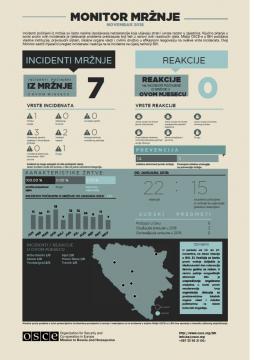 Incidenti počinjeni iz mržnje često su nasilna ispoljavanja netolerancije koja uzrokuju strah i unose razdor u zajednice. Ključno pitanje u borbi protiv ovih incidenata je suočavanje sa problemom predrasuda koji leži u osnovi ovih razdirućih djela. Misija OSCE-a u BiH podržava vladine institucije, pravosudni sistem, lokalne vlasti i organizacije civilnog društva u efikasnom reagovanju na ovakve vrste incidenata. Monitor mržnje nudi mjesečni pregled incidenata počinjenih iz mržnje, kao i reakcija zajednice na ove incidente zabilježene na području Bosne i Hercegovine.