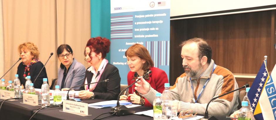 Učesnici na sastanku sudija i tužioca entitetskih i kantonalnih pravosudnih institucija, policijskih službenika i predstavnike Vlade FBiH o osnivanju posebnih odjela za borbu protiv korupcije u okviru Vrhovnog suda i Tužilaštva Federacije Bosne i Hercegovine; Sarajevo, 12. decembar 2019.