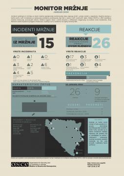 Incidenti počinjeni iz mržnje su često nasilna ispoljavanja netolerancije koja ulijevaju strah i unose razdor u zajednice. Ključno pitanje u borbi protiv ovih incidenata je rješavanje problema predrasuda koji leži u osnovi ovih razdirućih djela. Misija OSCE-a u BiH podržava vladine institucije, pravosudni sistem, lokalne organe vlasti i civilno društvo u efikasnom reagovanju na ovakve vrste incidenata. Ovaj Monitor sadrži mjesečni pregled incidenata i reakcija na te incidente na cijeloj teritoriji BiH.