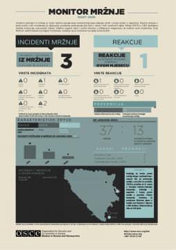 Incidenti počinjeni iz mržnje su često nasilna ispoljavanja netolerancije koja ulijevaju strah i unose razdor u zajednice. Ključno pitanje u borbi protiv ovih incidenata je rješavanje problema predrasuda koji leži u osnovi ovih razdirućih djela. Misija OSCE-a u BiH podržava vladine institucije, pravosudni sistem, lokalne organe vlasti i civilno društvo u efikasnom reagovanju na ovakve vrste incidenata. Monitor mržnje sadrži mjesečni pregled incidenata, ali i reakcija na incidente zabilježene na teritoriji BiH.