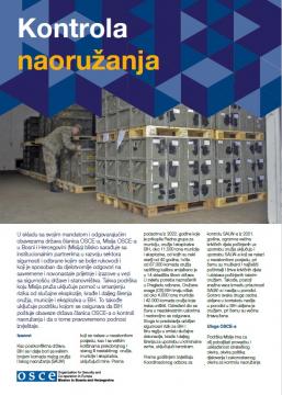 U skladu sa svojim mandatom i odgovarajućim obavezama država članica OSCE-a, Misija OSCE-a u Bosni i Hercegovini (Misija) blisko sarađuje sa institucionalnim partnerima u razvoju sektora sigurnosti i odbrane kojim se bolje rukovodi i koji je sposoban da djelotvornije odgovori na savremene i novonastale prijetnje i izazove u vezi sa sigurnošću države i stanovništva. Takva podrška koju Misija pruža uključuje pomoć u smanjenju rizika od slučajne eksplozije, krađe i daljeg širenja oružja, municije i eksploziva u BiH. To takođe uključuje podršku kojom se osigurava da BiH poštuje obaveze država članica OSCE-a o kontroli naoružanja i da o tome pravovremeno podnosi izvještaje.