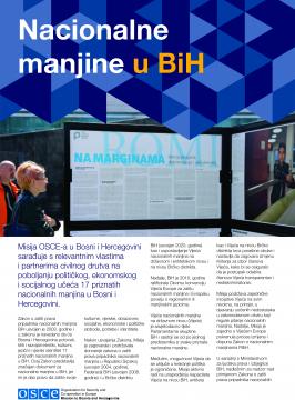Misija OSCE-a u Bosni i Hercegovini sarađuje s relevantnim vlastima i partnerima civilnog društva na poboljšanju političkog, ekonomskog i socijalnog učešća 17 priznatih nacionalnih manjina u Bosni i Hercegovini.