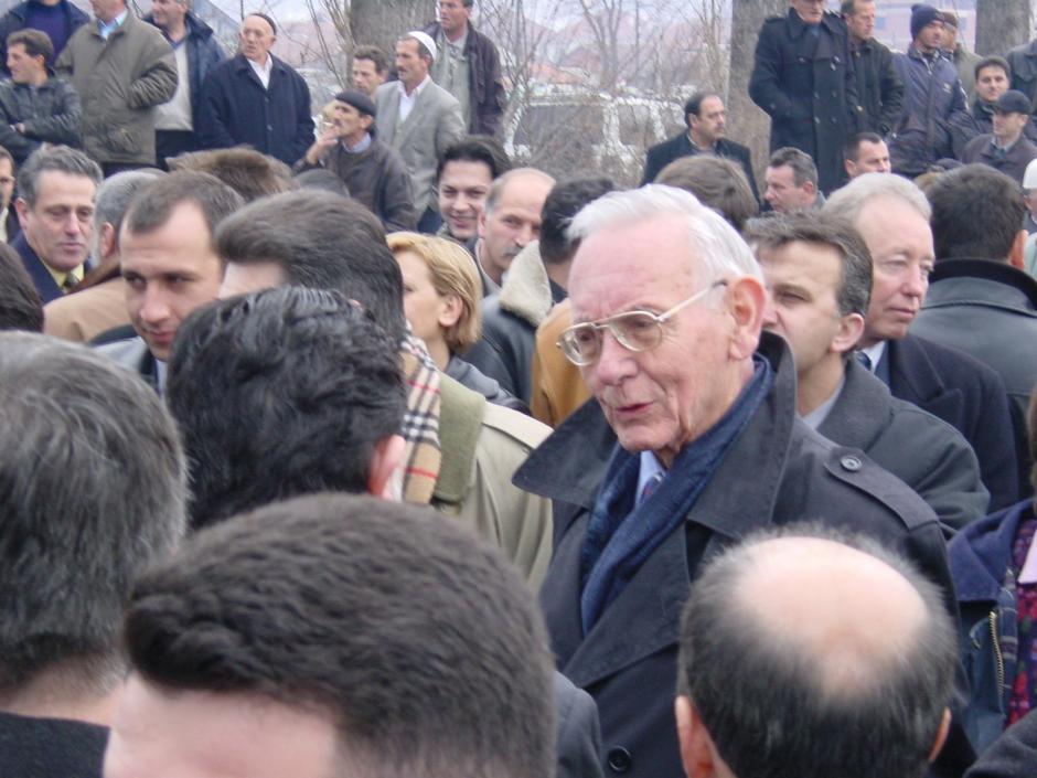 Max van der Stoel in Tetovo, former Yugoslav Republic of Macedonia, February 2001.