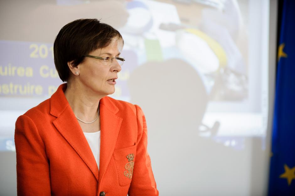 OSCE High Commissioner on National Minorities Astrid Thors speaks at the anniversary event of the Association of European Teachers of Moldova, Chisinau, 24 April 2015.