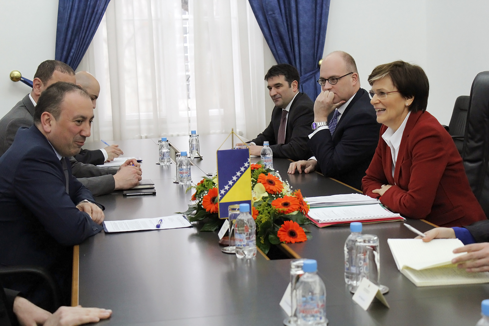 OSCE High Commissioner on National Minorities Astrid Thors (r) and Head of the OSCE Mission to Bosnia and Herzegovina Ambassador Jonathan Moore (r-c) met with Minister of Foreign Affairs of Bosnia and Herzegovina Igor Crnadak (l), Sarajevo, 23 March 2016.