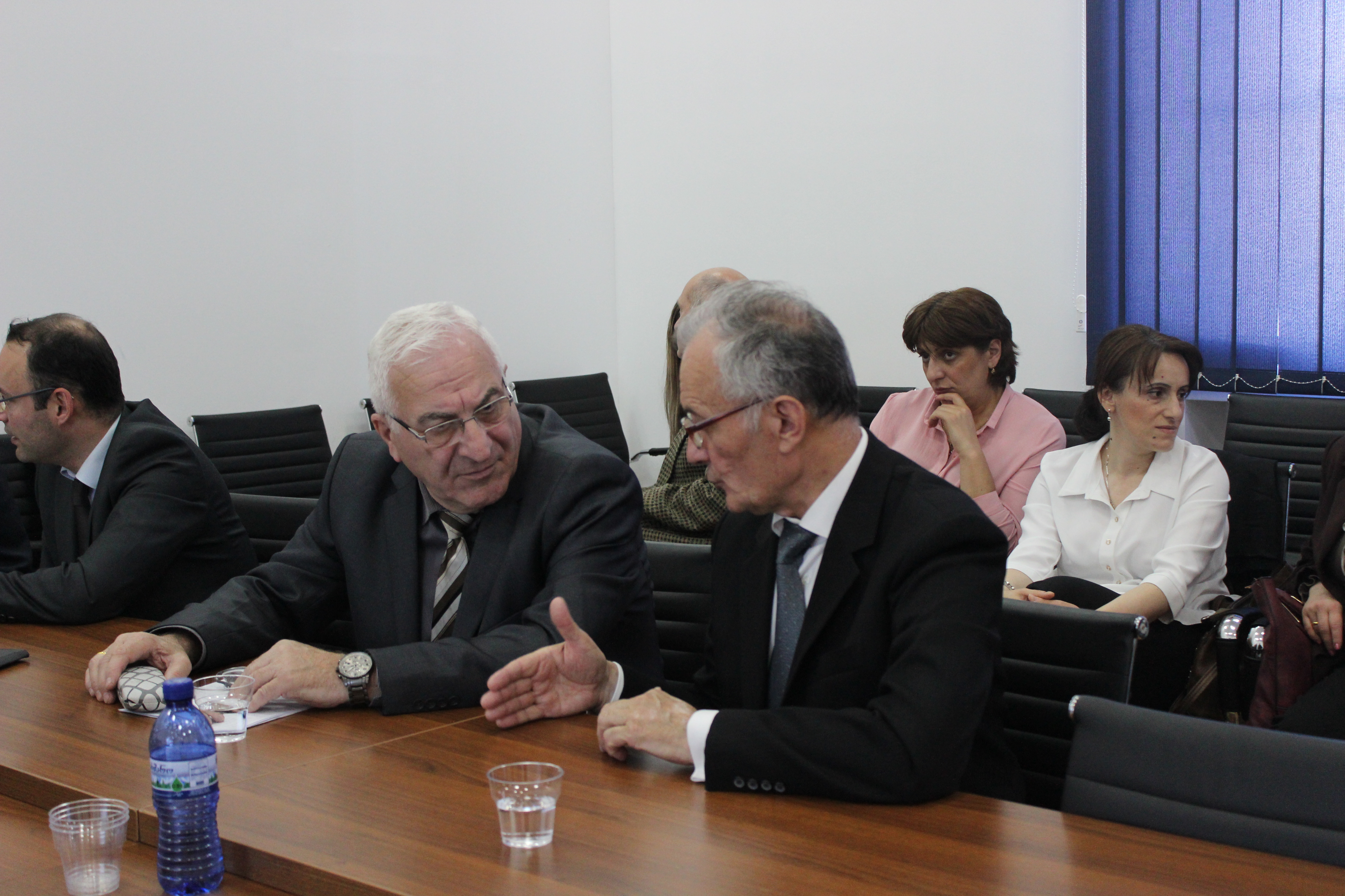 Merab Beridze, Rector of Samtskhe-Javakheti University (l), and Tamaz Marsagishvili, Deputy Minister of Education and Science of Georgia (r), attend a kick-off meeting to launch a long-term project to support the implementation of Georgia’s State Strategy for Civic Equality and Integration, Tbilisi, 16 May 2017.