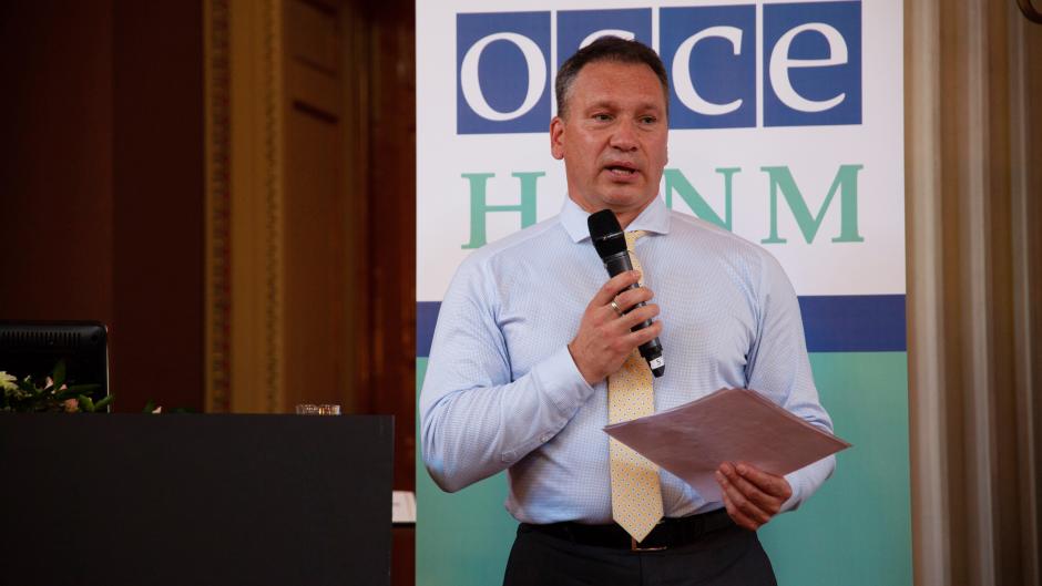The OSCE Project Co-ordinator in Ukraine, Ambassador Vaidotas Verba, speaks at the Language Policy and Conflict Prevention conference, which marks the 20th anniversary of the HCNM’s Oslo Recommendations regarding the Linguistic Rights of National Minorities, Oslo, Norway, 31 May.
