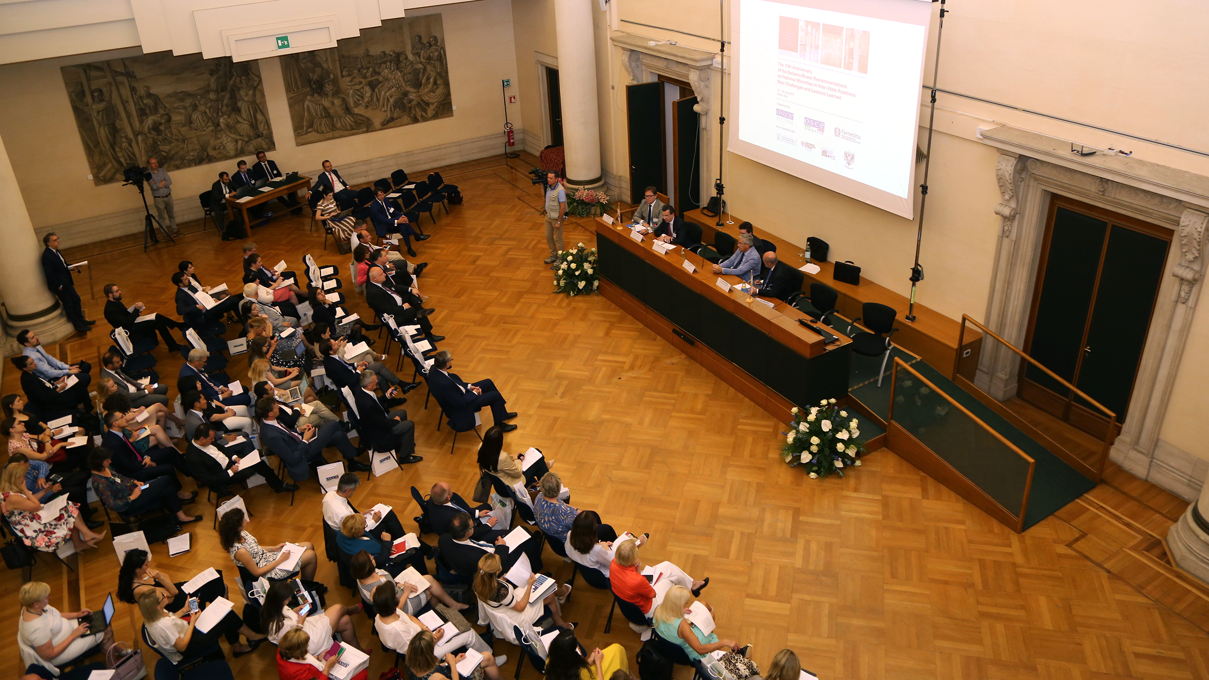 Participants at the conference marking the 10th Anniversary of the OSCE High Commissioner’s Bolzano/Bozen Recommendations on National Minorities in Inter-State Relations discuss new challenges and lessons learned, Udine, Italy, 16 July 2018.