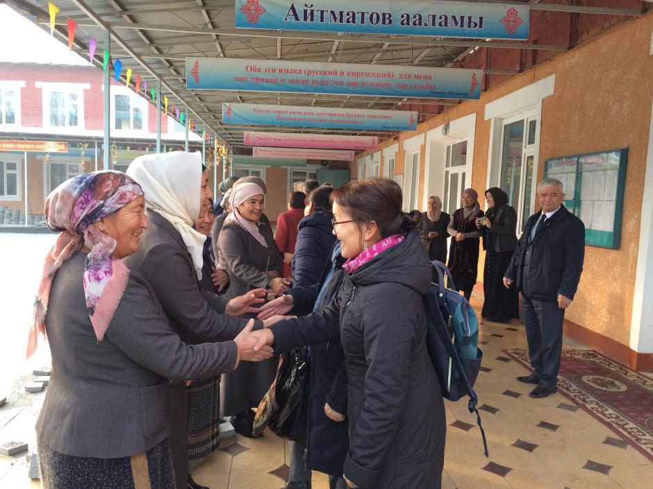 A group of educators from Mongolia visit school No.69 – which is named after Chingiz Aitmatov – that is piloting multilingual education for speakers of Uzbek as a mother tongue in Nariman, Kyrgyzstan, 17 November 2019.