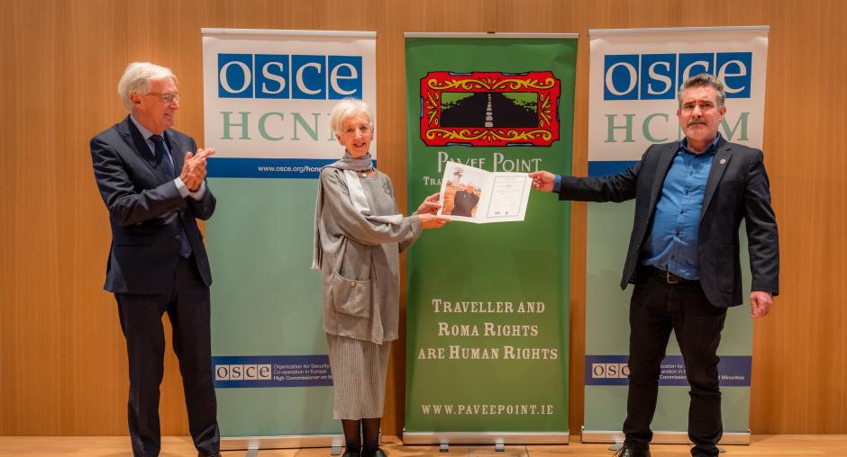 Addressing representatives from governments, civil society and international organizations who attended the award ceremony, Crickley added: “This acknowledgement of Pavee Point’s contribution to Traveller and Roma rights shows that our work, which has achieved progress against the odds, including during COVID-19 pandemic, has relevance for each of the 57 OSCE participating States.”