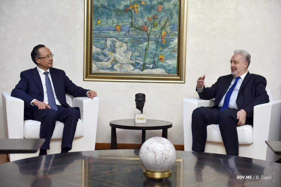 OSCE High Commissioner on National Minorities Kairat Abdrakhmanov (left) and Prime Minister of Montenegro Zdravko Krivokapić, Podgorica, Montenegro, 26 November 2021.