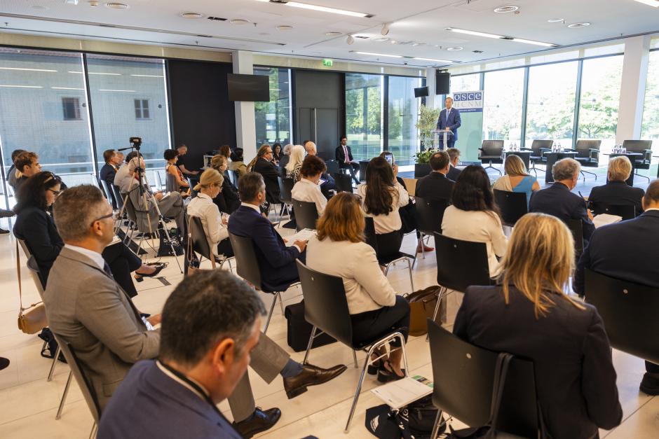 OSCE High Commissioner on National Minorities Kairat Abdrakhmanov delivers opening remarks at the 10th Anniversary Conference of The Ljubljana Guidelines on Integration of Diverse Societies, Brdo Congress Centre, Slovenia, 6 September 2022.