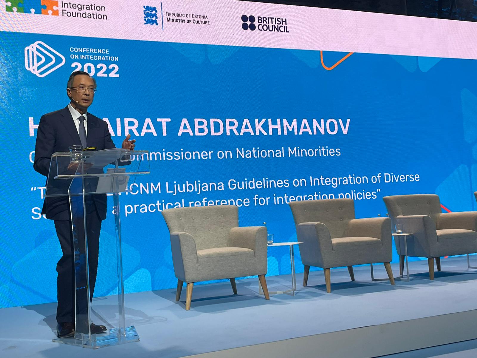 OSCE High Commissioner on National Minorities Kairat Abdrakhmanov delivers the keynote address to the conference “'Together or Apart: Searching for the Middle Ground”, 10 November 2022, Tallinn.