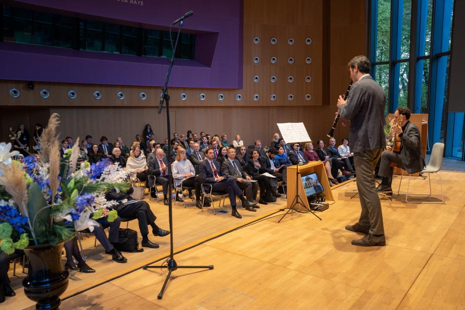 Levan Tskhadadze and Izhar Elias, Georgian musicians, play at the 10th Max van der Stoel Award Ceremony, 24 November 2022, The Hague.