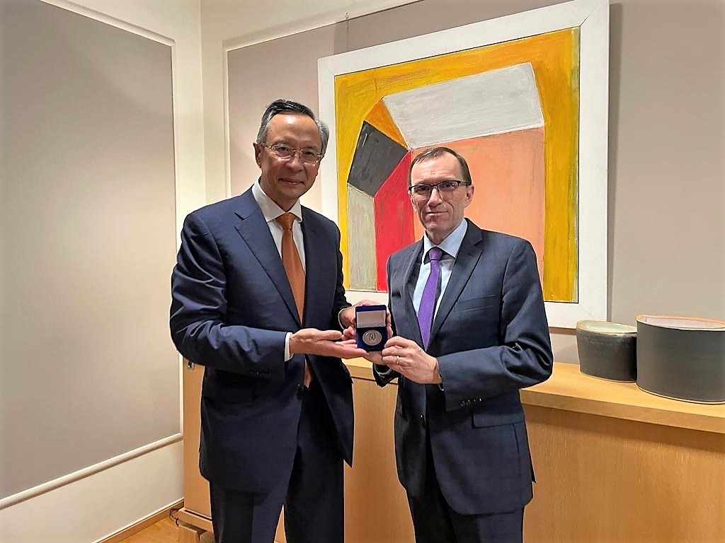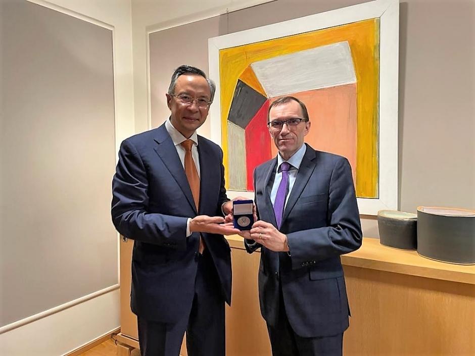 Kairat Abdrakhmanov, OSCE High Commissioner on National Minorities meeting Espen Barth Eide, Minister of Foreign Affairs of the Kingdom of Norway, Oslo, 6 November 2023.
