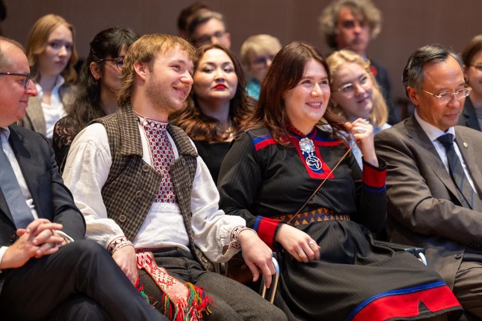 Gytis Blaževičius and Elisabeth Regine Myrland of Natur og Ungdom, during the 11th Max van der Stoel Award ceremony, 6 November 2024, The Hague.