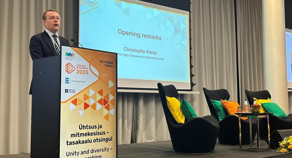 “Integration is a two-way process that requires openness, dialogue and participation from all sides. It means ensuring that every individual feels that they belong: that they have a stake in the common future, that their voice matters, and that they can preserve and express their own cultural, linguistic and ethnic identities,” said Kamp at the conference, which was organized by the Estonian Integration Foundation – a longstanding partner of the office of the HCNM – on 12 November in Tallinn.