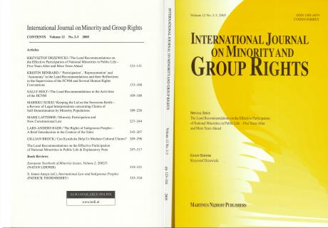 Volume 12, No. 2–3, 2005, pp. 123–324. Special Issue on The Lund Recommendations on the Effective Participation of National Minorities in Public Life – Five Years After and More Years Ahead.