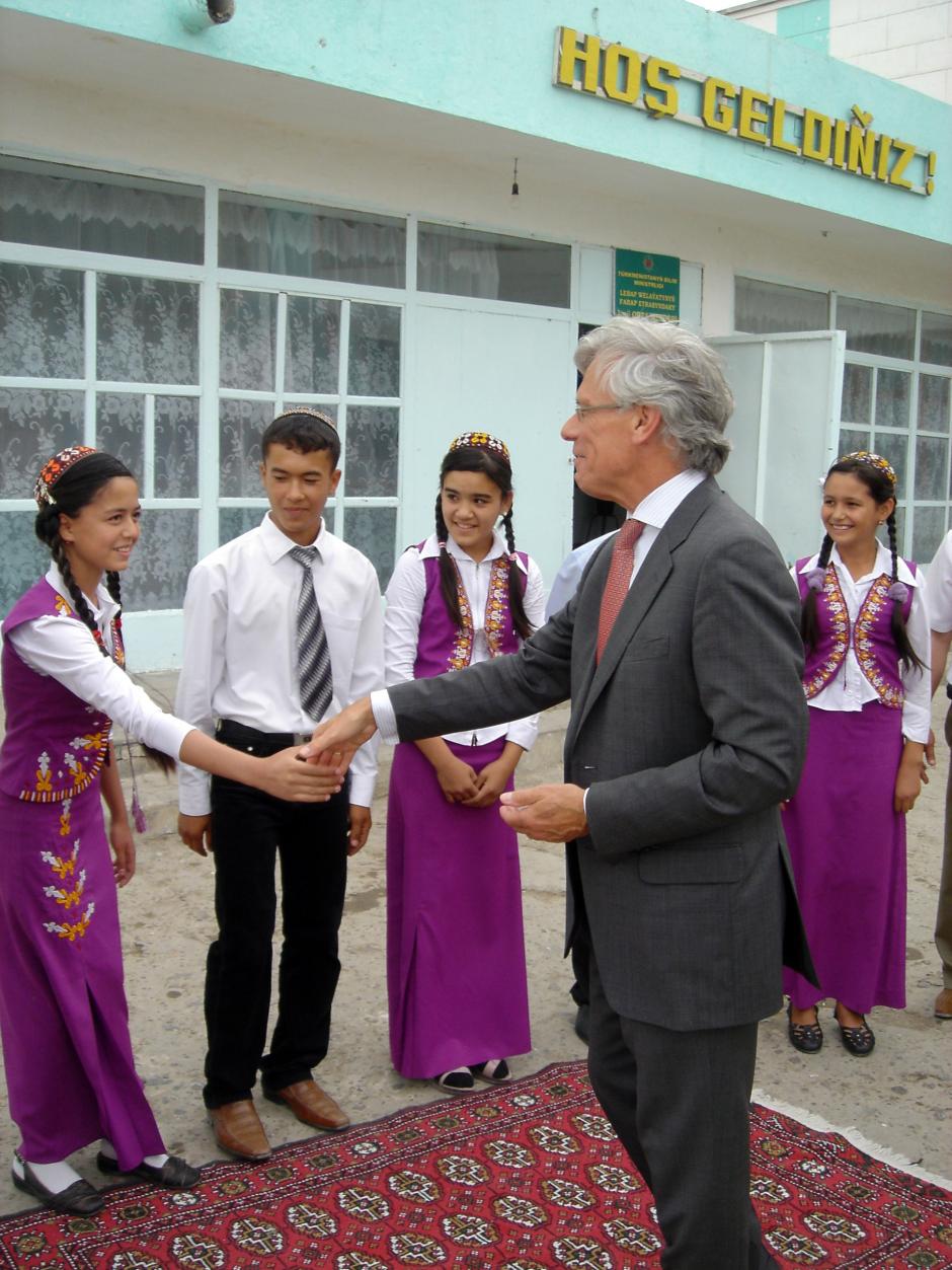 The OSCE High Commissioner on National Minorities, Knut Vollebaek, visits a secondary school in Farap, in the Lebap region of Turkmenistan, 20 May 2008.