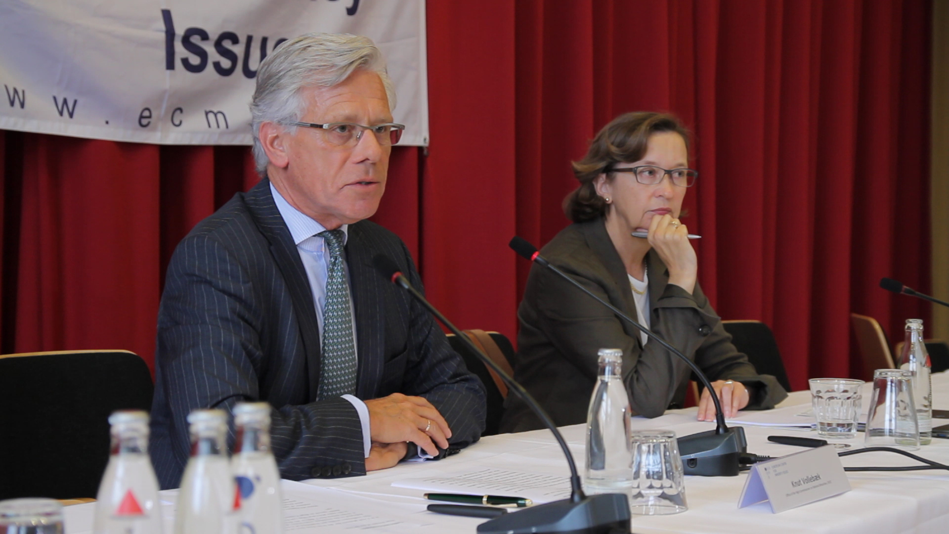 OSCE High Commissioner on National Minorities Knut Vollebaek (l) and ECMI Director Tove H. Malloy at the conference “HCNM 20 Years On", organized by the European Centre for Minority Issues (ECMI), Flensburg, 6 July 2012.