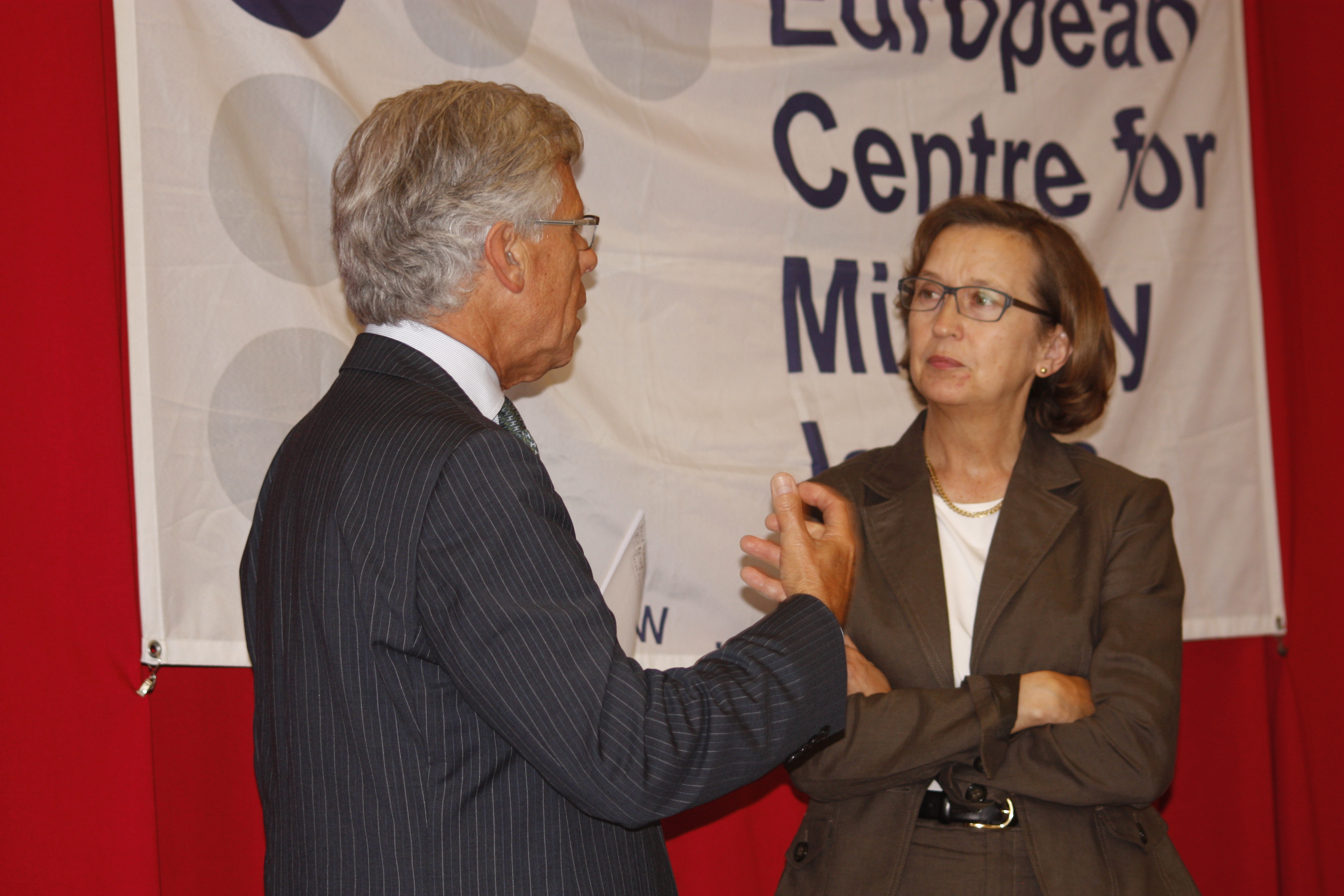 OSCE High Commissioner on National Minorities Knut Vollebaek (l) talks to the Director of the European Centre for Minority Issues (ECMI) Tove H. Malloy during the conference “HCNM 20 Years On", organized by the ECMI, Flensburg, 6 July 2012.
