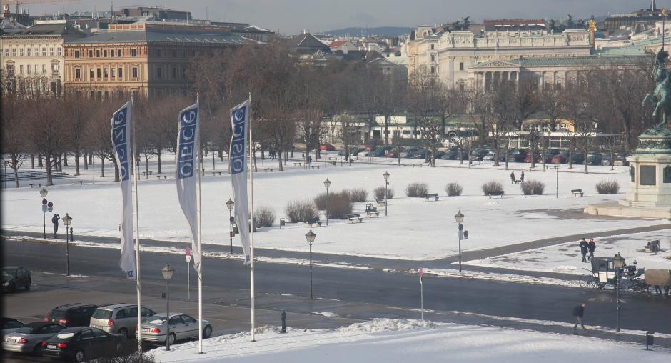 The OSCE flags outside the Hofburg. Vienna, 1 February 2010. (OSCE/Susanna Lööf)