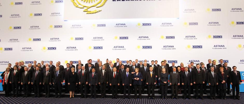 Heads of State and Government during the family photo session before the opening of the OSCE Summit in Astana, 1 December 2010.